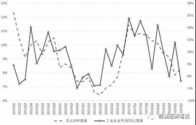 在通胀率较为温和、可控的前提下,名义GDP增速上升,意味着上述五个部门名义收入的增加,反之亦然。这时候,名义GDP增速的波动,就构成了微观主体对经济周期的感知。相较而言,宏观决策部门更加关心就业,所以就更加关注GDP的实际增速。而居民、企业等更加关心名义收入(在通胀率较为温和的前提下),因此其对经济周期的感受,就与名义GDP增速周期更加关系密切。从工业企业部门的利润同比增速来看,其与GDP名义增速具有较为显著的相关性。2012年1季度至2019年2季度,工企利润增速与名义GDP增速的简单相关系数为0.50,而与实际GDP增速的相关系数仅为0.02。