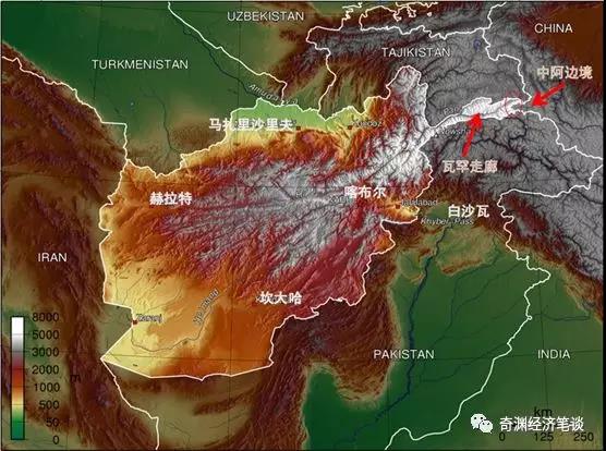 而现今的阿富汗版图明显缩水,重镇之一的白沙瓦,已经在19世纪中期划入英属印度,也就是现在的巴基斯坦,而中部大部分地区均为高海拔的山脉。主要的4大城市,喀布尔、坎大哈、赫拉特、马扎里沙里夫,分别在中部山脉的东南西北四个方向,地理位置上来看离心力较强。