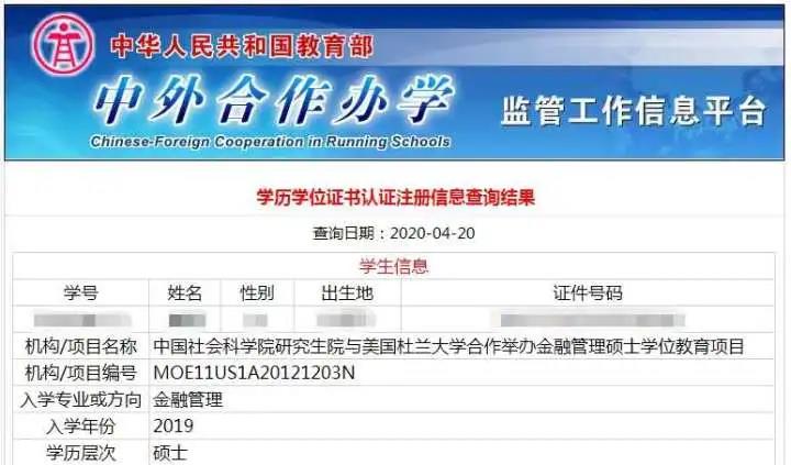 学信网能查的学历才靠谱?NO,像社科院与美国杜兰大学中外合作办学金融管理硕士项目是在涉外监管网可查的