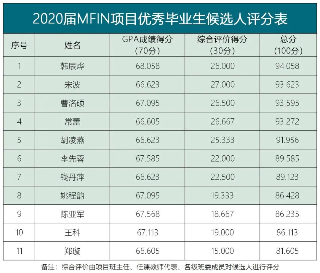 2020届|MFIN金融管理硕士、MME能源管理硕士优秀毕业生公示