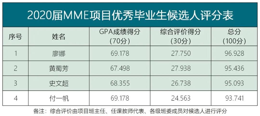 附件:2020届MME项目优秀毕业生候选人评分表