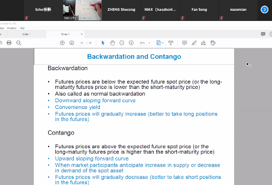在这门课程中,Pan教授通过理论讲解、案例学习、交易案例分析、小组学习和考试的形式完成教学内容。同学们表示这样的形式很好,交流和互动有助于加深对课程内容的理解。