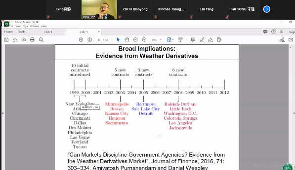 2020年12月13日,中国社会科学院大学-美国杜兰大学合作办学能源管理硕士(MME项目)2019级美方专业课程Energy Risk Management(《能源风险管理》)在线授课圆满结束。本课程主要从能源公司(生产商或重要能源用户)的角度介绍企业风险管理的内容。