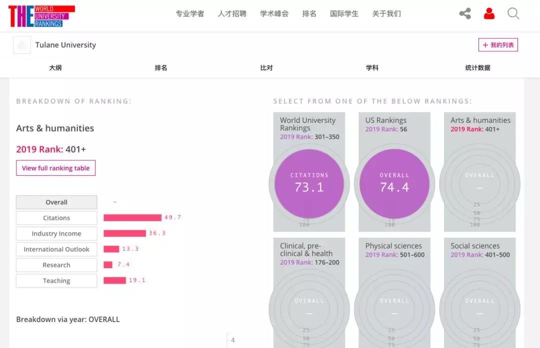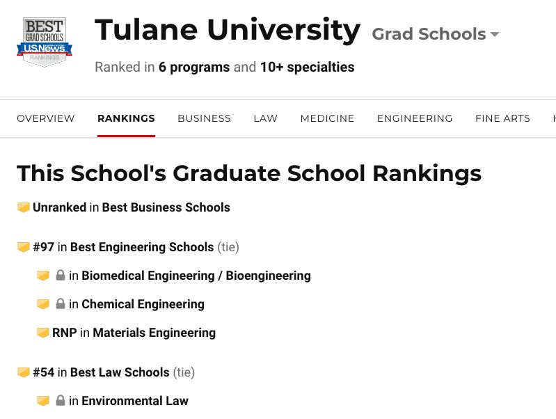 大名鼎鼎的US News也将Tulane Grad School作出了以下排名: