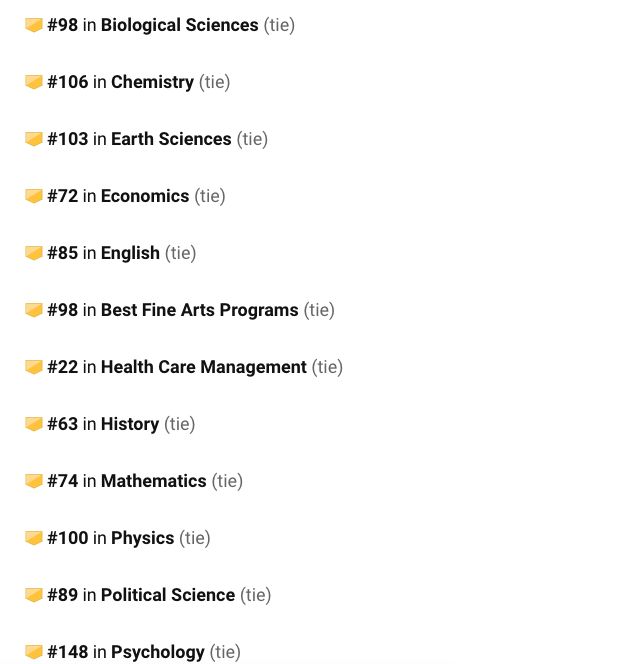 Tulane的Health、Social&Physical Sciences、Business、Education、以及Psychology都位于前列。