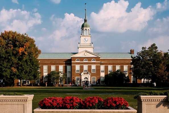校址地名霍姆伍德原是《独立宣言》签名人之一的查尔斯·卡罗尔之子的庄园。整个校园占地面积140 英亩,四处古树环抱,绿草如茵。校内建筑以19世纪典型学院派风格的红砖建筑为主。校园里四通八达的小路把各幢大楼连成一片,宁静安谧,人文气息浓郁,素有巴尔的摩“精神首府”的雅称。