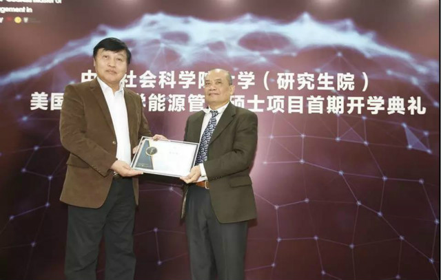 25日下午,全体首期学员参加了在中国社会科学院总部举行的开学典礼暨特邀教授、导师聘任仪式。负责主持仪式的社科大国际教育学院院长王晓明教授首先强调了此硕士培养计划的唯一性及其难以模仿和替代,并指出这是中国培养能源领域领军人才的一个重要举措。社科院研究生院院长黄晓勇教授在启动仪式的主题发言中表示,中国社会科学院很多研究所早已开展能源领域的研究,并且成果斐然。中国不缺能源方面的专家教授,但如何有计划的培养新一代能源管理专家是需要大家合力的,能源管理硕士项目也是置前的一个能源人才储备方案。黄晓勇教授指出,在能源变革的节点上学习如何管理能源对所有师生都是一种挑战,社科院搭建了目前能源领域最好的教学平台,并且制定了一系列完善的机制。而想要在这个领域有所建树的学生则必须在课外做大量的准备,从理论的通读到每天新数据的实时更新都要走在老师的前面才行。黄晓勇教授另外指出,这是一个涵盖了政治、社会、能源、经济、大数据等诸多领域的综合学习课程,必须门门优秀。随后,黄晓勇院长向与会的能源专家陈卫东、彭立斌、王永中、朱润民、朱彤颁发中国社会科学院大学(研究生院)- 美国杜兰大学能源管理硕士项目特邀教授及行业导师证书,并勉励所有师生珍惜机会、克服困难,共促精英。