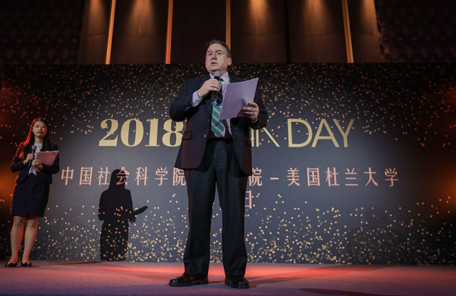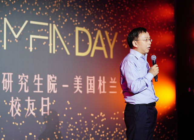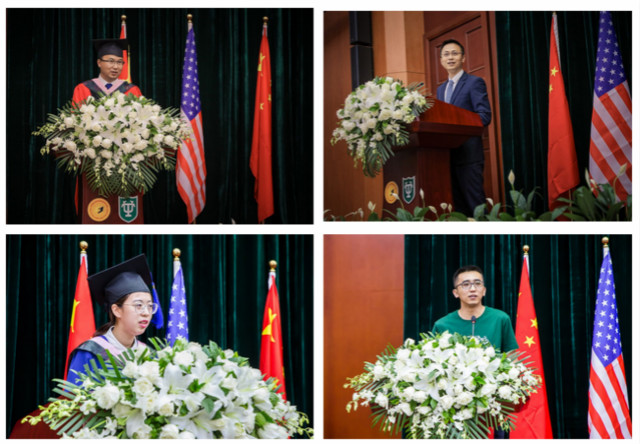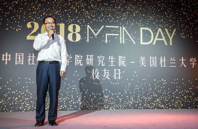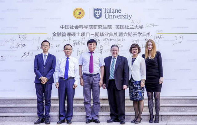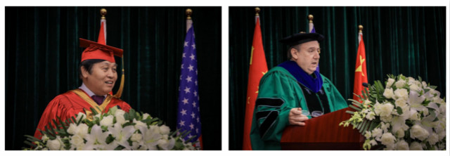 典礼仪式上,社科院研究生院院长黄晓勇教授在致辞中首先感谢了杜兰大学对于中美合作办学的长期鼎立支持,在对学员的寄语中强调了要勇于承担社会责任,不只局限于金融工具的管理和创新,还要守望好历史和文明、并成为中美贸易战后的重建者。