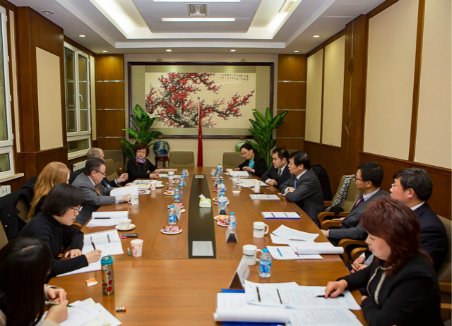 中国社会科学院研究生院与美国杜兰大学弗里曼商学院,就两校合作举办的金融管理硕士项目(以下简称“MFIN项目”)项目发展现状和后续的专业学位合作领域方面举行会谈。社科院研究生院院长黄晓勇教授、副院长王兵、外事处处长王炜博士、国际文化教育中心主任王晓明教授、MBA教育中心执行副主任赵卫星博士,美国杜兰大学弗里曼商学院院长Ira.Solomon教授、Goldring国际商务研究所执行主任John.M.Trapani教授等参加此次会谈。